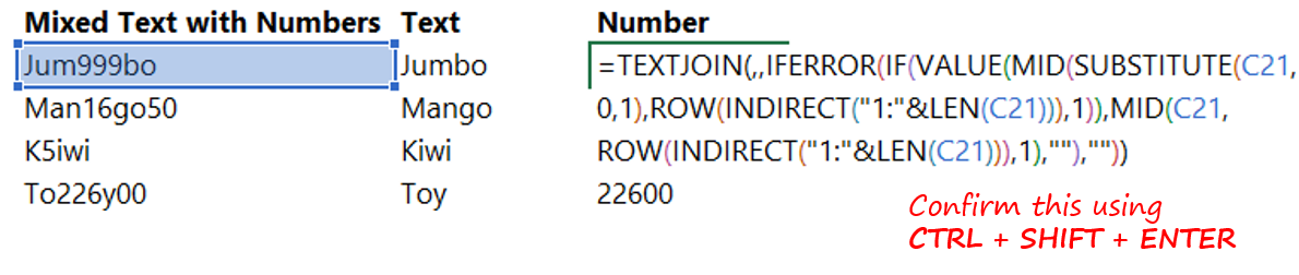 And then you can extract the numbers from the cell by applying this formula. If you want to split text and numbers you can run the following excel formula that use the min function find function and the len function within the left function in excel. We can also use this option with short cut keys alt a e simultaneously once we select the data which we want to separate.