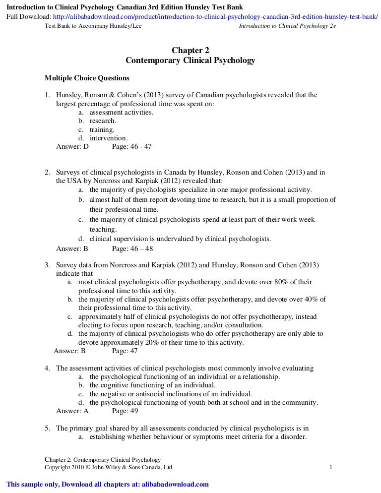 Introduction To Clinical Psychology Third Canadian Edition By John Hunsley And Catherine M Lee Chapter Ppt Video Online Download