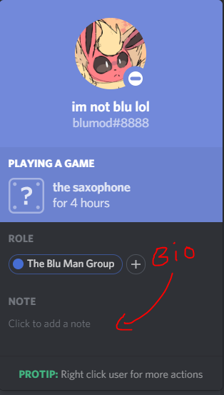Turn note section into bio section. Head over to discords bot portal and create a new application. This bot adds bios like on instagram for example to discord.