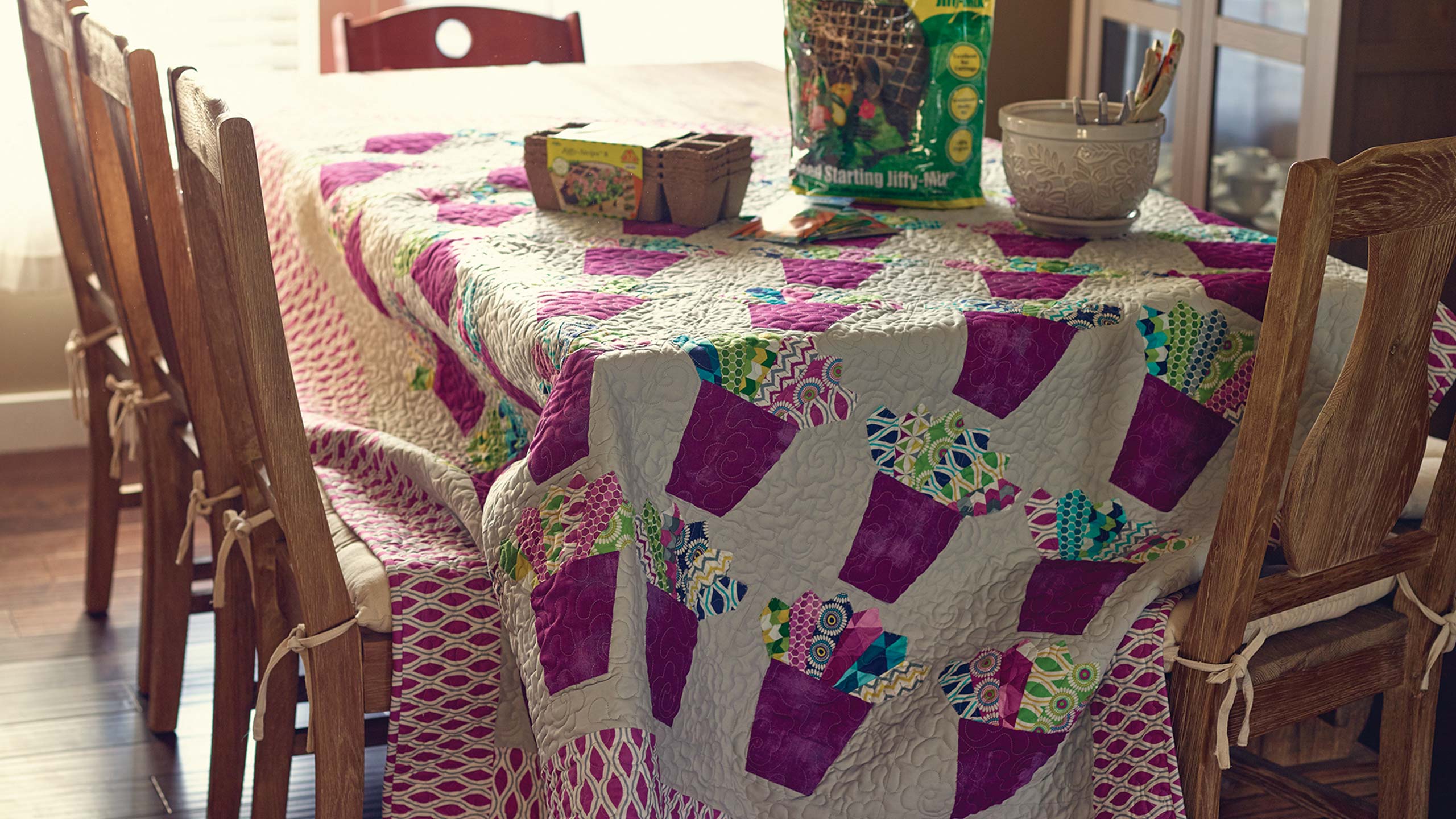 I layer the top of the quilt with batting and backing and i secure the applique pieces by stitching through all the layers either with the walking foot or with free motion quilting. Stacy shows how she tried out several different zig zag stitch sizes before choosing one to use on the quilt top. To get the materials needed to do this pro.