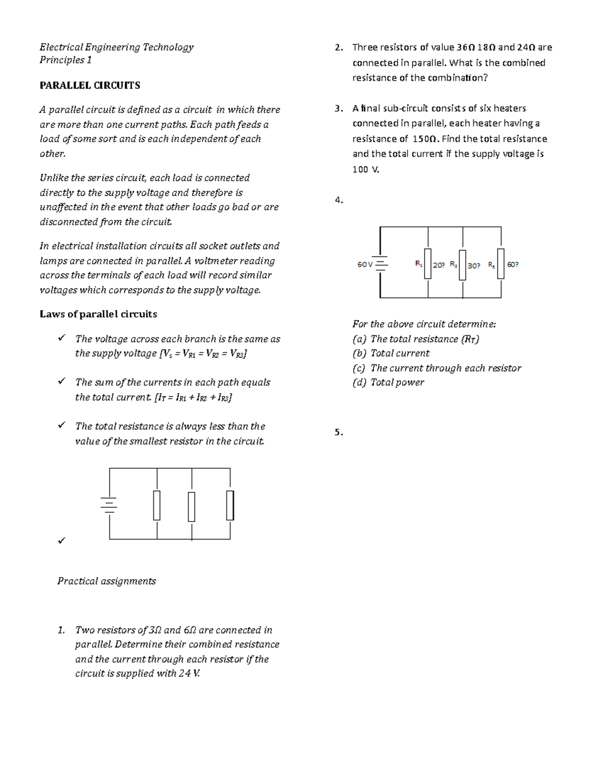 In a parallel combination of resistors the voltage or potential difference across each resistor is the same and is equal to the applied voltage ie. An electrical circuit is a path or line through which an electrical current flows.