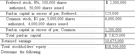 Add the two amounts of paid in capital in excess of par to calculate the total paid in capital in excess of par. Add treasury stock to your result to calculate total paid in capital. In this example add 40000 and 20000 to get 60000 in total paid in capital.