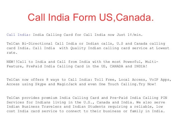 Do this by dialing 011. Calling uscanadian toll free numbers. Calling an india phone number from the united states requires a few more steps than it would if you were calling a local phone number.