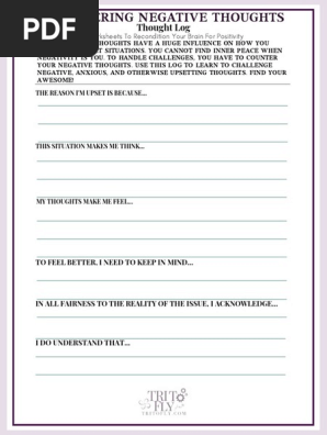 How to challenge negative thoughts pdf. What is the evidence that this thought is true. Someone who regularly receives positive feedback at work might feel that they are horrible at their job because of one criticism. However you have control over how you respond to your thoughts.