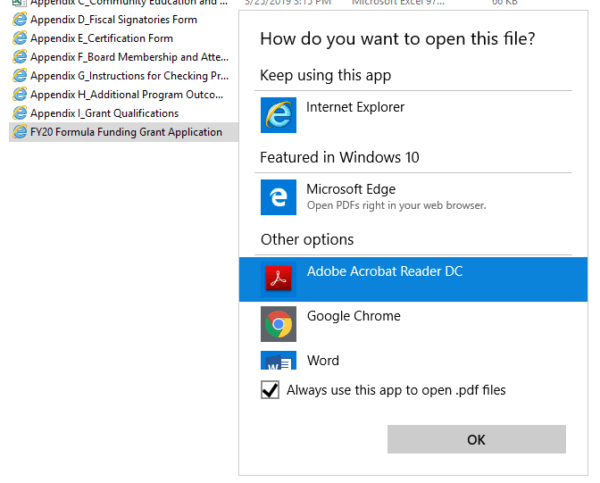 Click on it when it appears in the list. Right click on a file and choose open with choose another app. On the next screen scroll down until you find pdf pdf file.