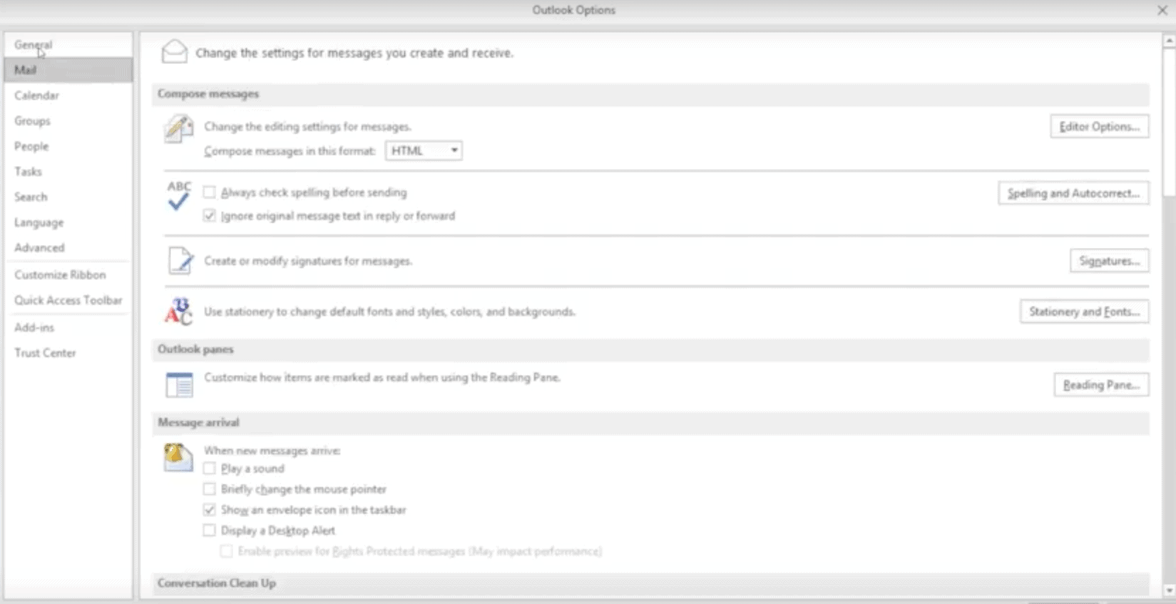 Change an email signature. Under maillayout select email signature. On the outlook options window click on mail in the left pane and click on the signatures button on the right larger pane.