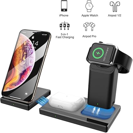 Amazon Com Wireless Charger 3 In 1 Wireless Charging Station For Iphone Airpods Pro 2 Apple Watch Stand Charging Dock Fast Charging Pad Compatible With Iphone 11 Xr Xs X 8p Se 2020 Include Adapter Home Audio Theater