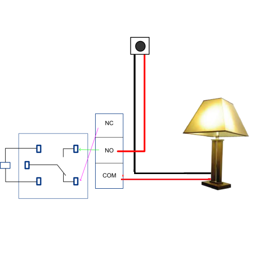 Ensure the manual control. The com common connection of a relay is the part of the relay that moves. Cut off the power wire of your lamp.