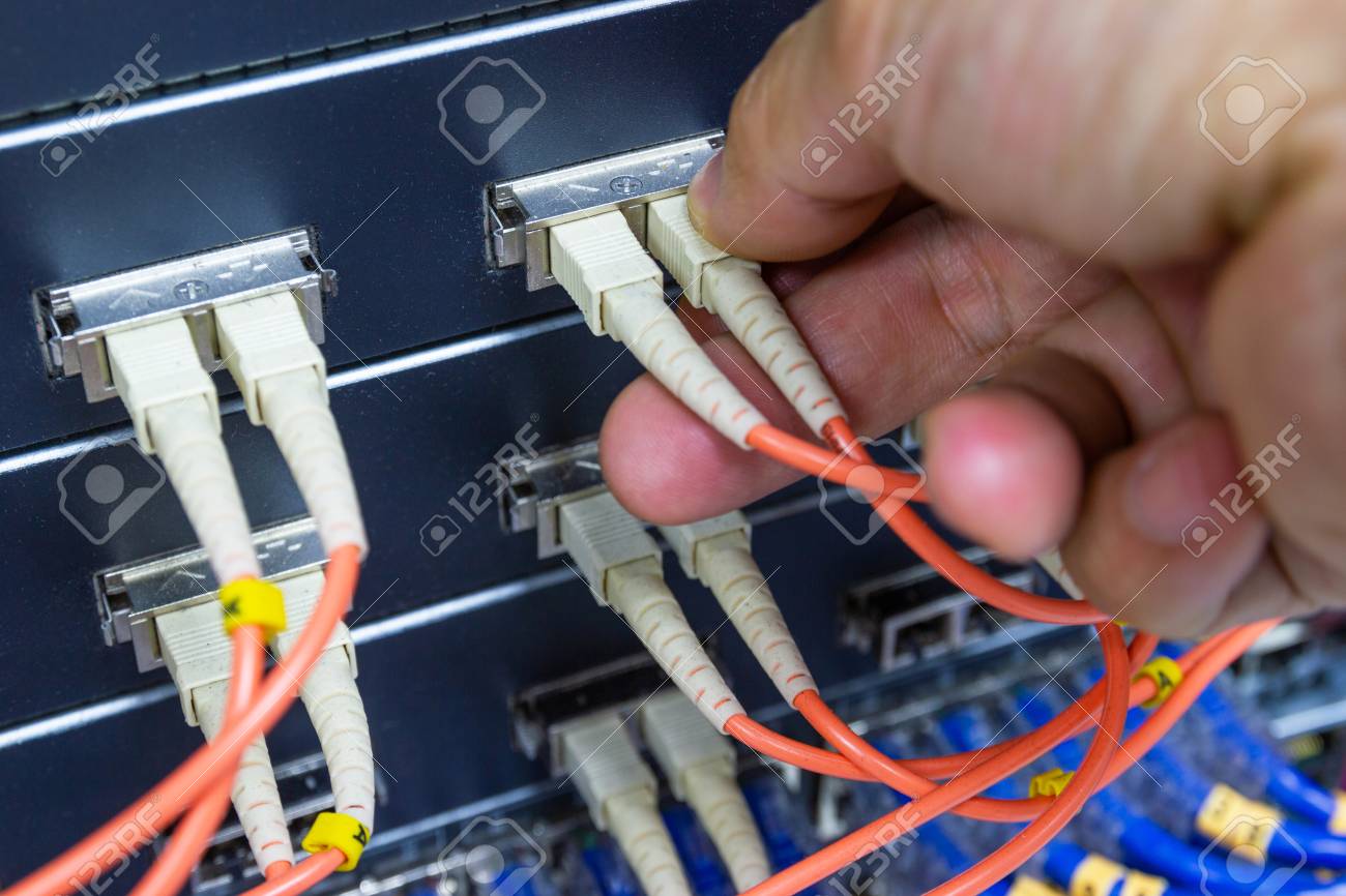 Cable Network Fiber Optic Cable Connect To Switch Port In Server Room Stock Image Image Of Installing Concept 162832987