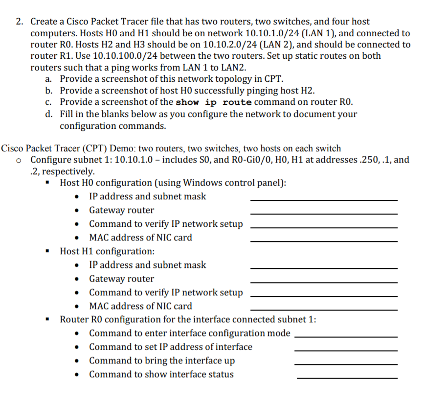 The formula for creating a static route is ip add destination network id subnet mask gateway note. This is made virtual on cisco packet tracer. How to connect 2 routers with 2 pc in cisco packet tracer do as follows.