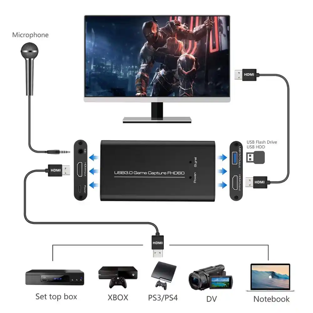 Usb 3 0 4k 60hz 1080p 60fps Hd Video Game Capture Card Video Converter Hdmi Output Live Streaming For Xbox Ps4 Mac Plug And Play Wish