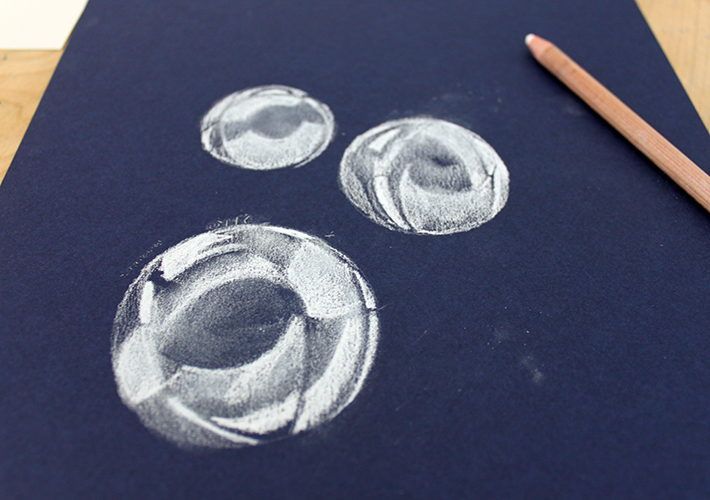 While teaching the lesson i walked around the room blowing bubbles. Using a blending stump or a rolled up piece of paper towel start blending your pencil marks across your bubble so that they get lighter as you go up towards the top. 1 start with a circle bubble shape.