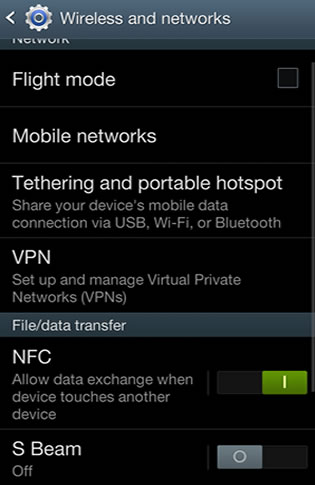 Your phones nfc chip and android beam needs to be activated before you can use nfc. Locate the communication settings. This phone normally has nfc functionality.