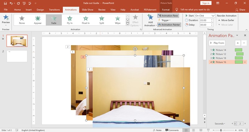 They add visual interest but because theyre faded a bit they wont dominate or distract from your slide content. After that click on the images and head to animations and choose the fade option. A file explorer will open up at this.