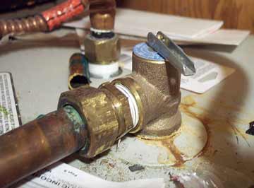 The t p valve which stands for temperature and pressure. If the problem persists call a plumber or water heater repair pro. Check the plumbing pipes above the water heater using a stepladder if necessary.