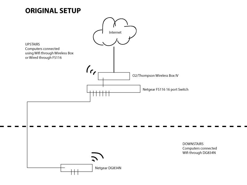 If you plan to use the same one upstairs and downstairs consider placing the modemrouter upstairs if possible. In order to do this youll need a few hundred feet of ethernet cable. The one with wi fi capability is for upstairs so put that to one side for later.
