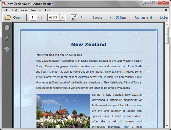 Open a pdf document in adobe reader. Then click on file in the menu bar.